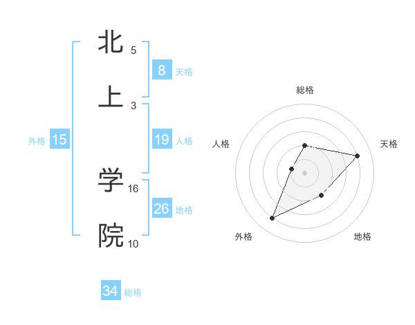 北上 学院さんの総格は34画の2点!