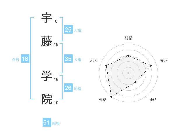 宇藤 学院さんの総格は51画の3点!