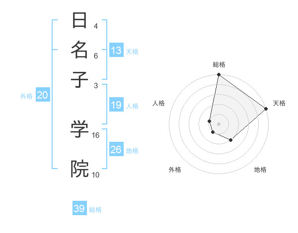 日名子 学院さんの総格は39画の5点!