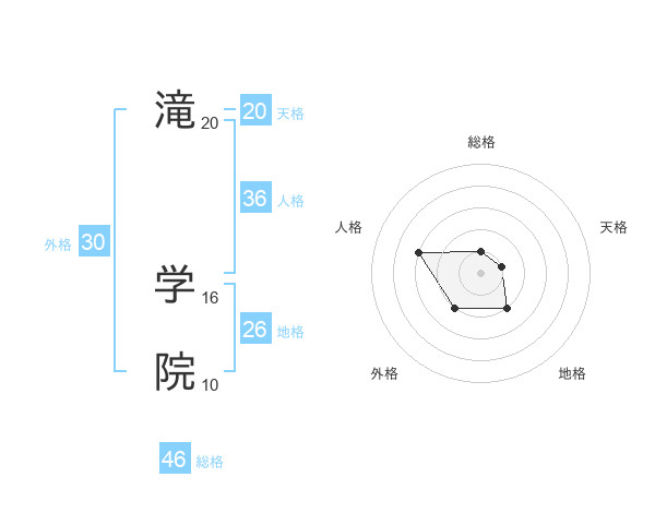 滝 学院さんの総格は46画の1点!