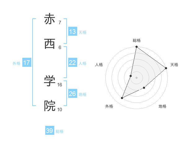 赤西 学院さんの総格は39画の5点!