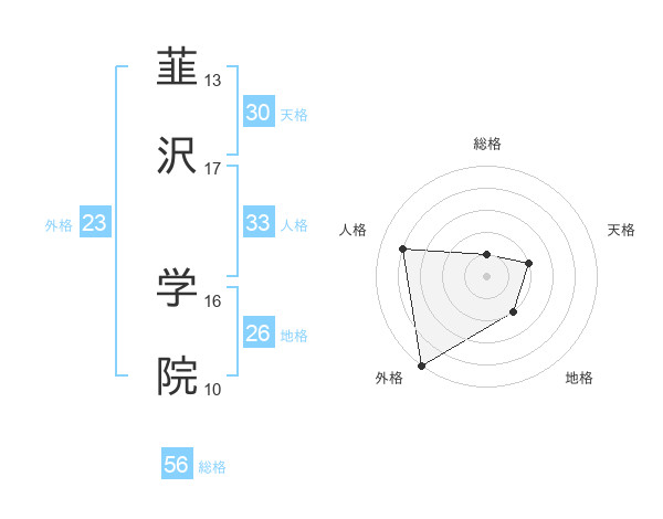 韮沢 学院さんの総格は56画の1点!