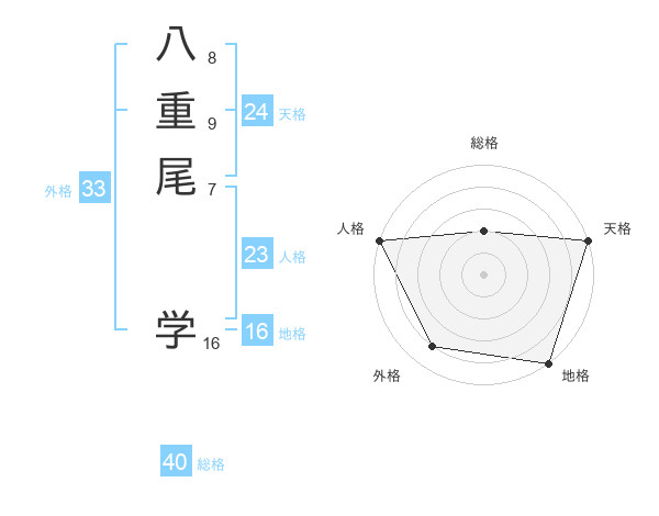 八重尾 学さんの総格は40画の2点!