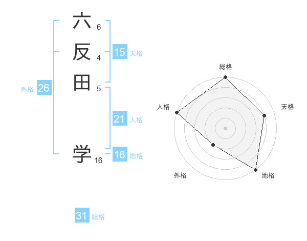 六反田 学さんの人格は21画の5点!