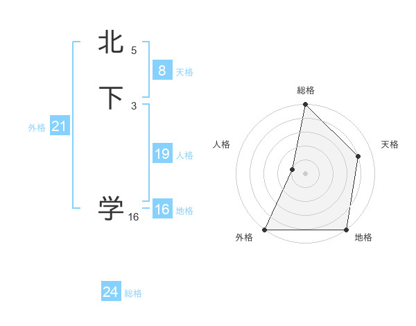 北下 学さんの外格は21画の5点!