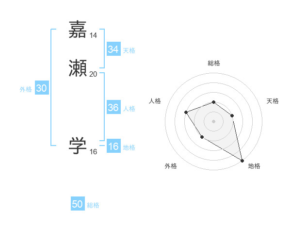 嘉瀬 学さんの天格は34画の2点!