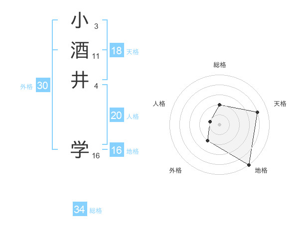 小酒井 学さんの天格は18画の4点!