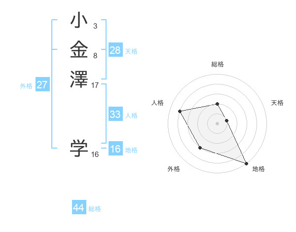 小金澤 学さんの総格は44画の2点!
