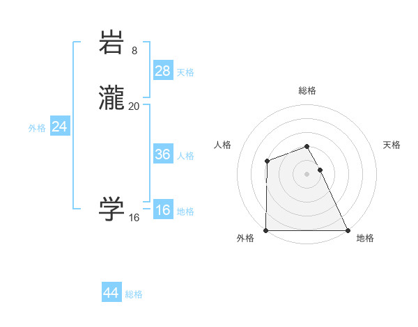 岩瀧 学さんの総格は44画の2点!