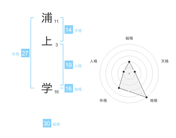 浦上 学さんの天格は14画の1点!