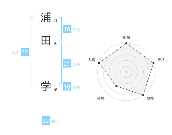 浦田 学さんの天格は16画の5点!