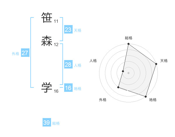 笹森 学さんの天格は23画の5点!