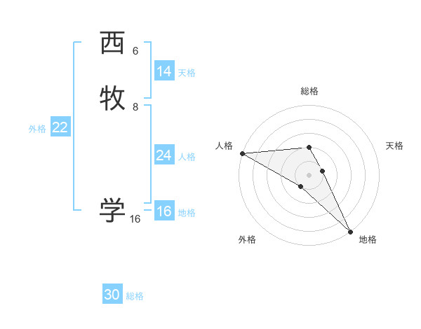 西牧 学さんの総格は30画の2点!