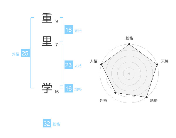 重里 学さんの総格は32画の5点