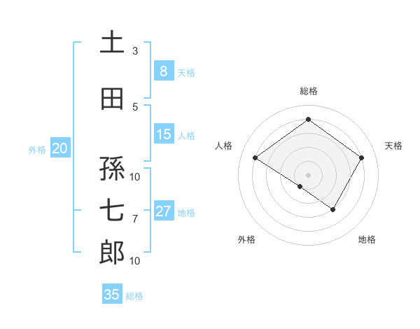 土田 孫七郎さんを姓名の画数から五運を鑑定