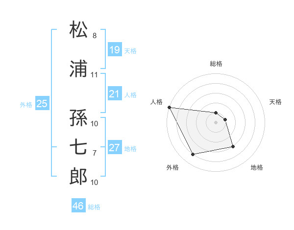 松浦 孫七郎さんを姓名の画数から五運を鑑定