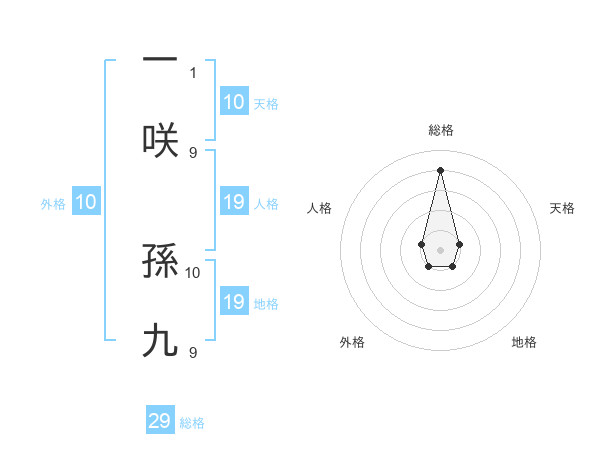 一咲 孫九さんを姓名の画数から五運を鑑定