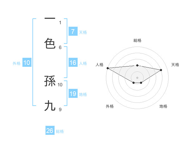 一色 孫九さんの総格は26画の2点!
