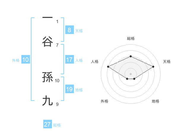 一谷 孫九さんを姓名の画数から五運を鑑定