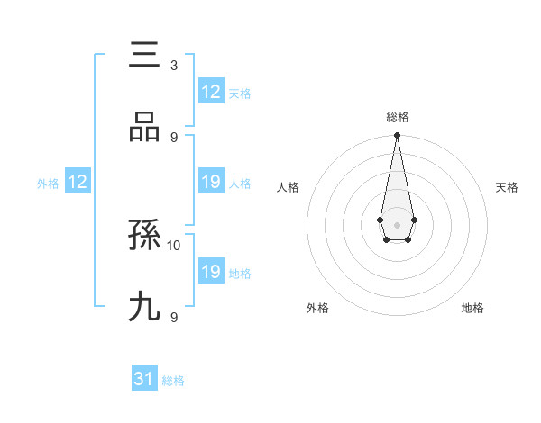 三品 孫九さんの総格は31画の5点!