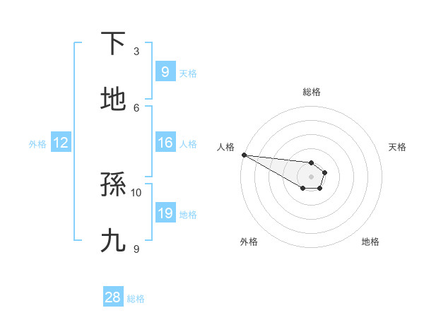 下地 孫九さんの総格は28画の1点!