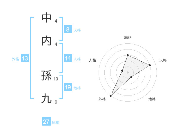 中内 孫九さんの天格は8画の4点!