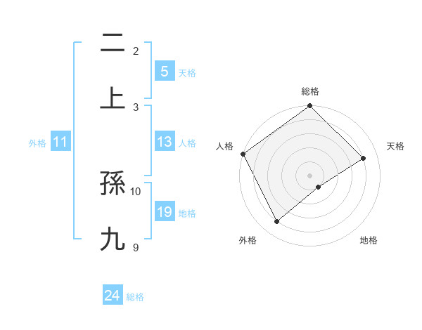 二上 孫九さんの総格は24画の5点!