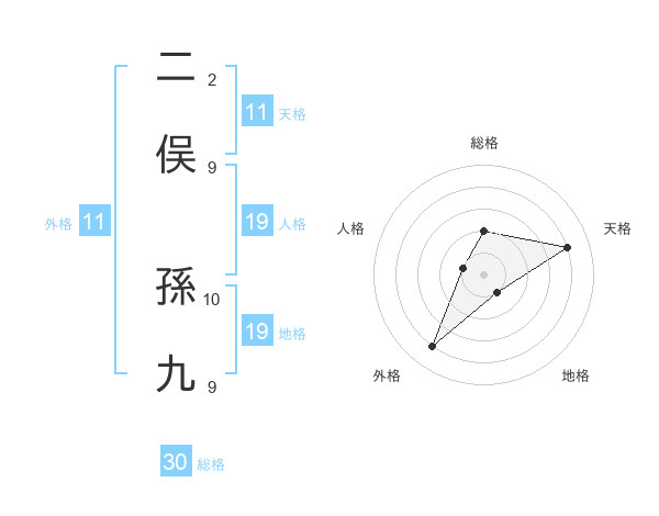 二俣 孫九さんを姓名の画数から五運を鑑定