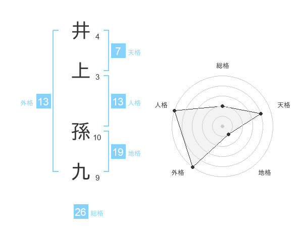 家系が持つ宿命的な運勢を表します。祖先から受け継いだ苗字ですので自分の力が及びません。家柄を象徴します。