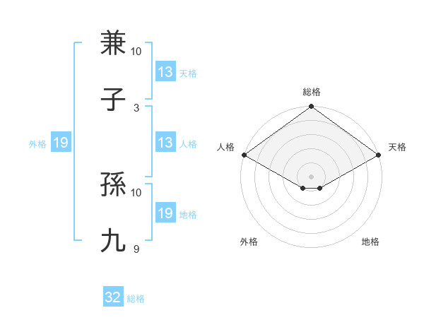 兼子 孫九さんを姓名の画数から五運を鑑定