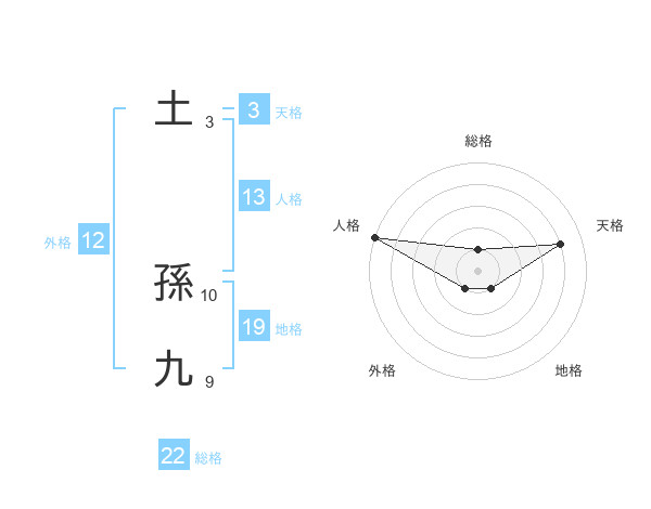 土 孫九さんの外格は12画の1点!