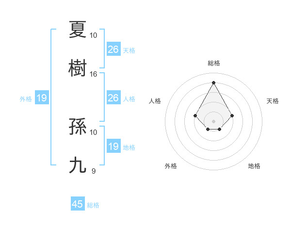 夏樹 孫九さんを姓名の画数から五運を鑑定
