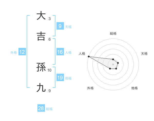 大吉 孫九さんの総格は28画の1点!