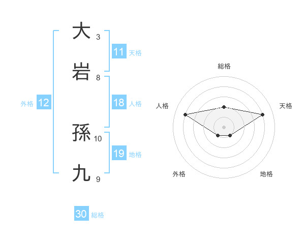大岩 孫九さんの総格は30画の2点!