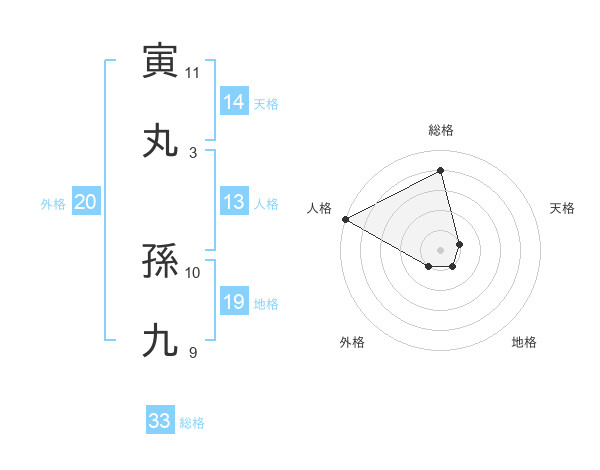 寅丸 孫九さんの総格は33画の4点!