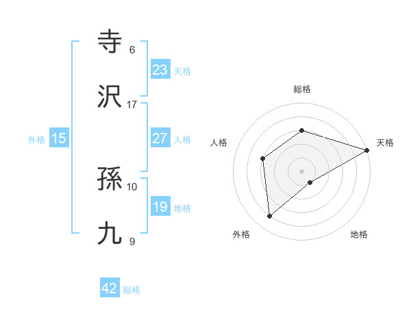 寺沢 孫九さんの天格は23画の5点!