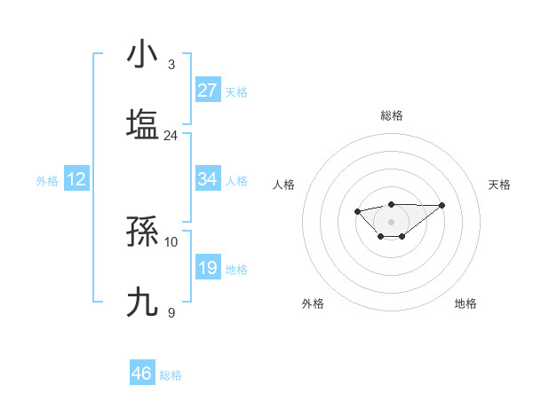 小塩 孫九さんを姓名の画数から五運を鑑定