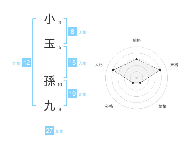 小玉 孫九さんの総格は27画の3点!
