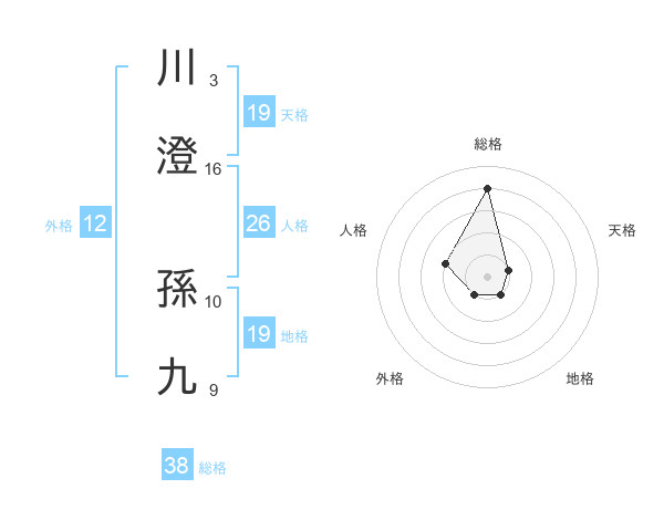 川澄 孫九さんの総格は38画の4点!