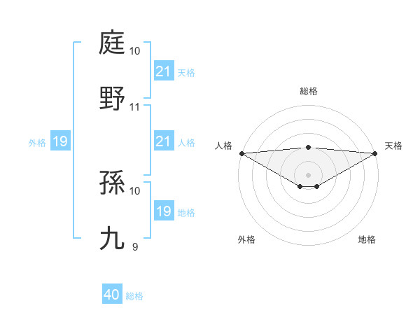庭野 孫九さんの天格は21画の5点!