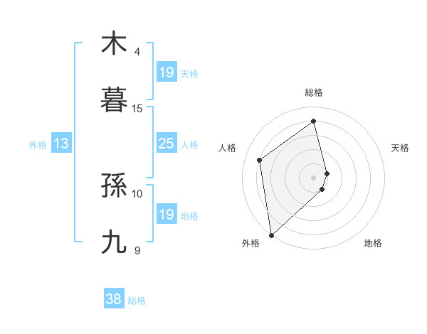 木暮 孫九さんの総格は38画の4点!