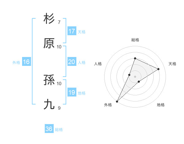 杉原 孫九さんの天格は17画の4点!
