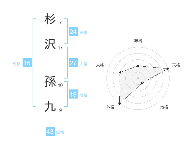 杉沢 孫九さんを姓名の画数から五運を鑑定