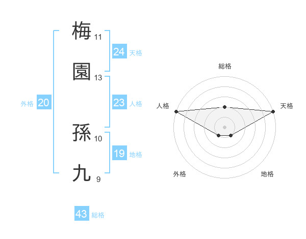 梅園 孫九さんの天格は24画の5点!