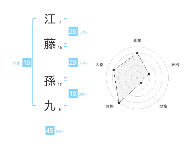 江藤 孫九さんを姓名の画数から五運を鑑定