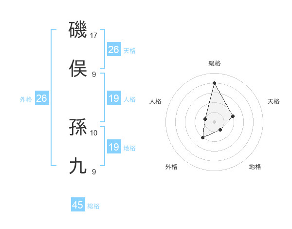 磯俣 孫九さんの総格は45画の4点!