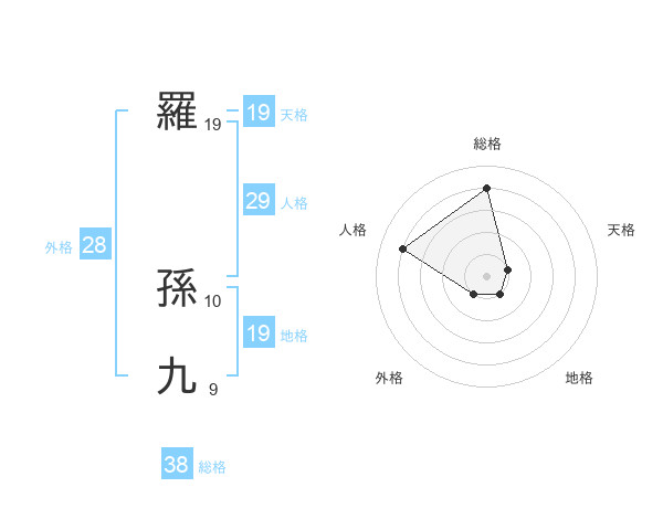 羅 孫九さんの総格は38画の4点!