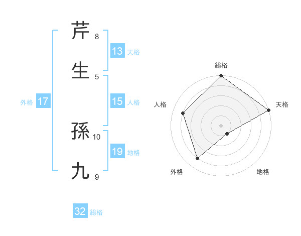 芹生 孫九さんの総格は32画の5点!