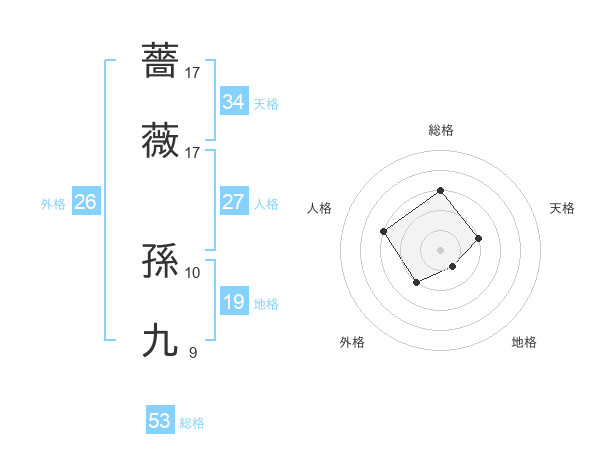 薔薇 孫九さんを姓名の画数から五運を鑑定