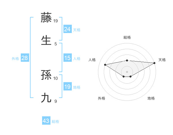 藤生 孫九さんの天格は24画の5点!